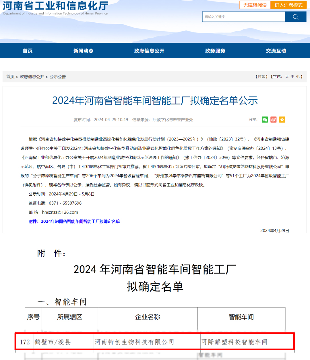 近日,河南特創(chuàng)生物科技有限公司的“可降解塑料袋智能車(chē)間”在河南省工業(yè)和信息化廳的嚴(yán)格審驗(yàn)下,成功獲得2024年省級(jí)智能車(chē)間認(rèn)證,進(jìn)一步鞏固了河南特創(chuàng)在生物基可降解智能制造領(lǐng)域的領(lǐng)先地位。這不僅是對(duì)河南特創(chuàng)智能化車(chē)間的肯定,也表明河南特創(chuàng)在智能化轉(zhuǎn)型中取得了重要進(jìn)展。
